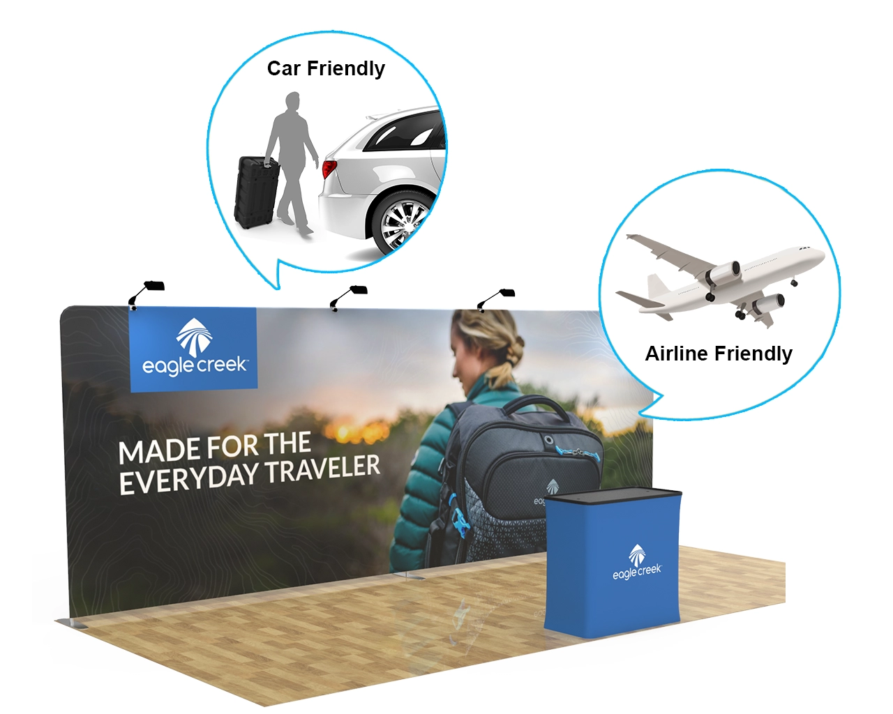 2. The perfect match pre-configured trade show booth displays are portable. First, the 20ft Straight Tension Fabric Display is lightweight and easily transported. Second, the Display Podium is also a hard case with wheels. It has a spacious interior that allows for all the additional accessories used within trade show booths to be stored and transported as well. Third, The LED lights can catch more trade show goer's eyes.