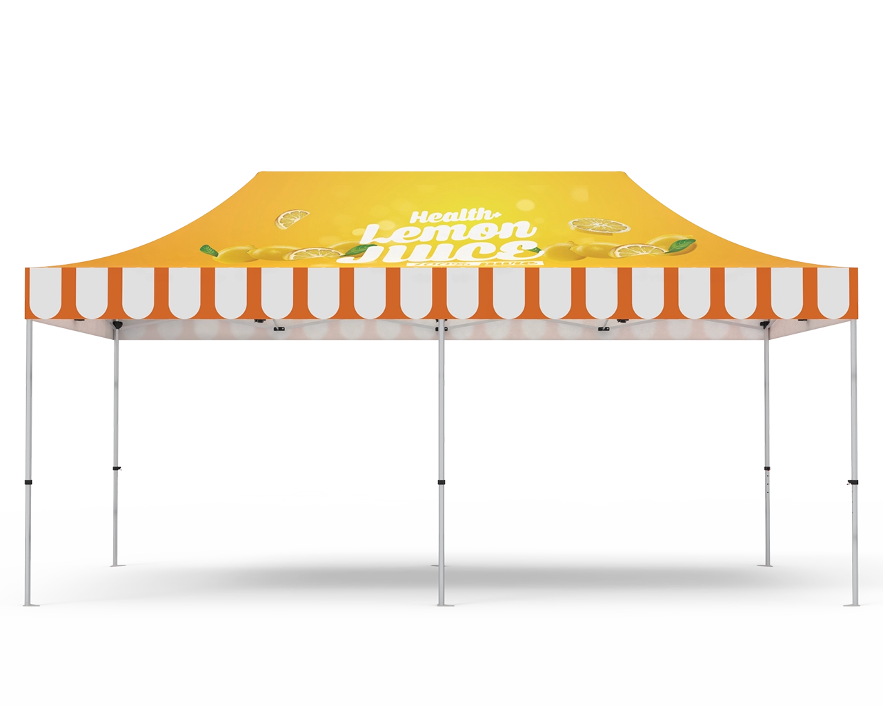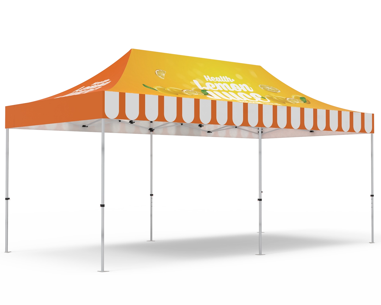 Signleader is dedicated to providing the best pop up canopy tent available, and this 10-by-20 canopy tent will be a good choice for you if our 10-by-10 and 10-by-10 pop up tent can’t meet your requirement. Each of 10x20 canopy tents is also called the event tent which is made-to-order and allows us to provide custom finishes, graphics, and accommodate special requests. You can use these event tents for everything indoor and outdoor events, like vendor booths at trade shows, fairs and other similar places. They also make great additions to parties, weddings, rehearsal dinners, bridal gatherings, baptisms and more. Canopy is printed and sewn weather resistant tent polyester. Print your brand message on each of the four peaks and valance panels. Our large format full color capabilities take artwork seam to seam unlike competitor tents that rely on small vinyl applications.