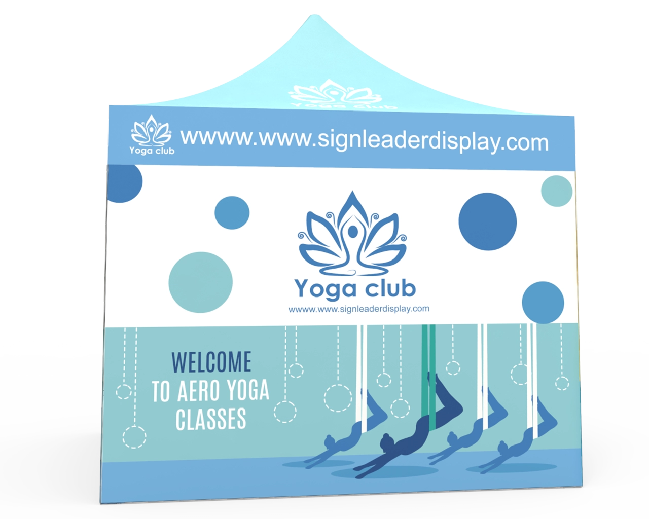 This pop up canopy tent 10x10 kit is equipped with a 10x10 ft durable 1.6 inch (40 mm) heavy-duty aluminum frame, and 600D Oxford cloth thermal transfer custom printed graphics for the canopy and 4 x single-sided full walls. The event tents pop up can also resist rain, wind and other things that may ruin a good time. Signleader Display offers 3 different sizes of activity tents, which can meet almost any needs. Including 10x10 custom tents, 10 x 15 pop up canopy tents and custom canopy tents 10 x 20, as well as various options to supplement pop up tents.