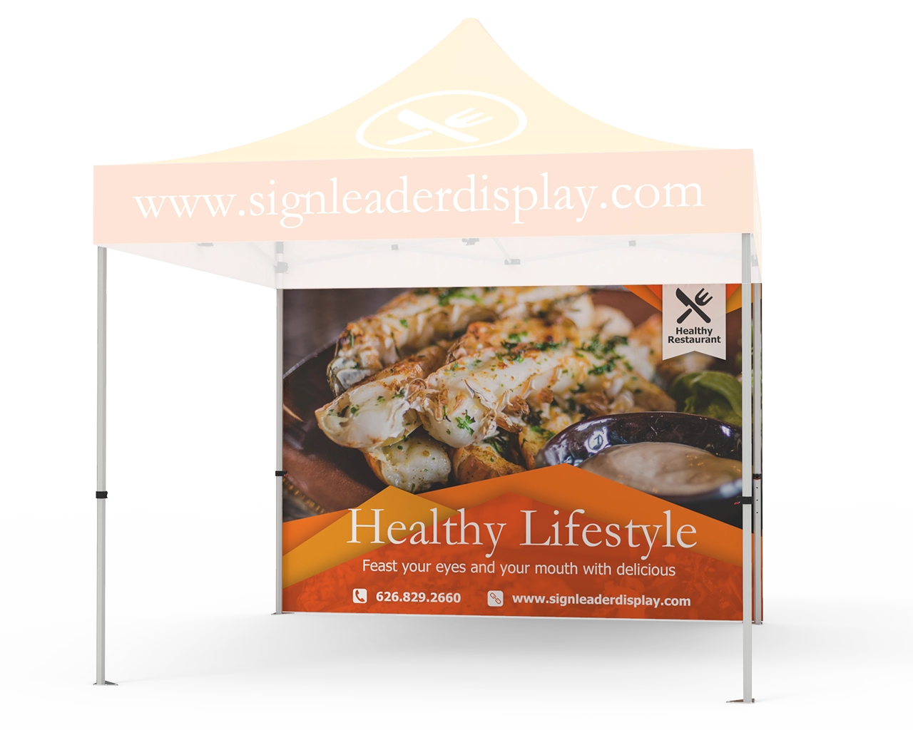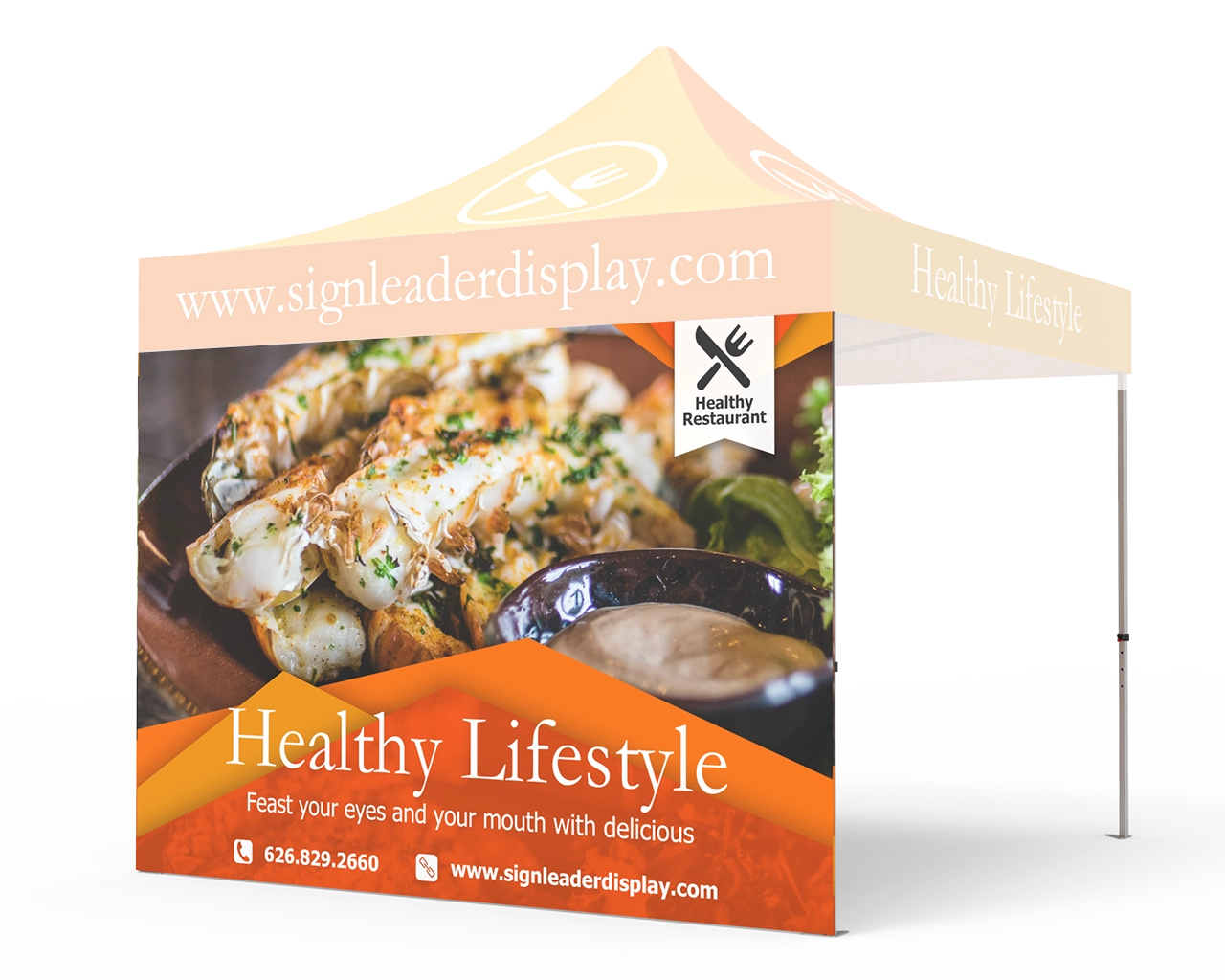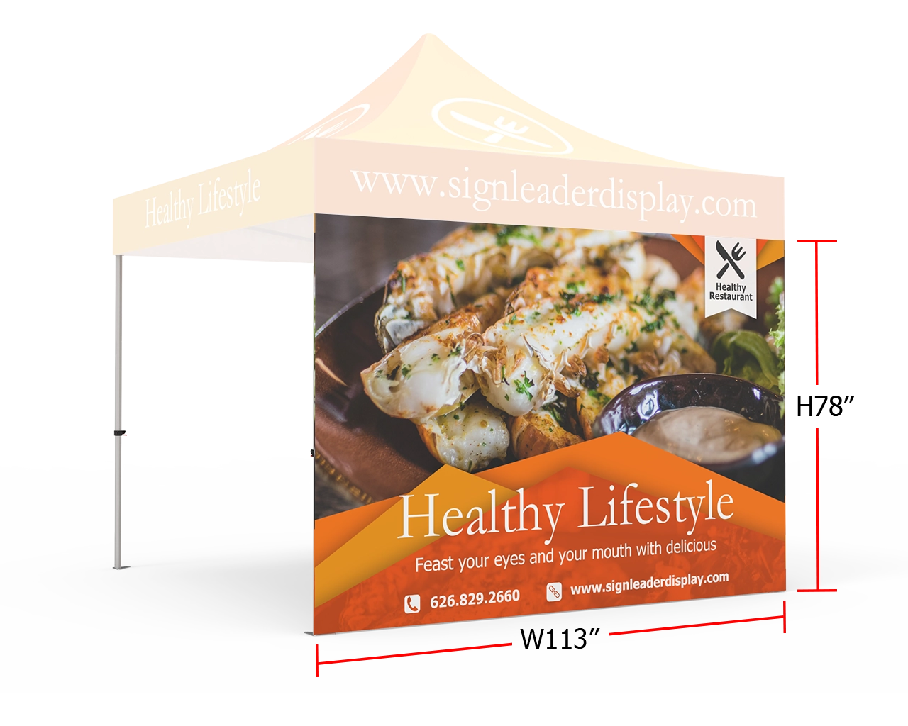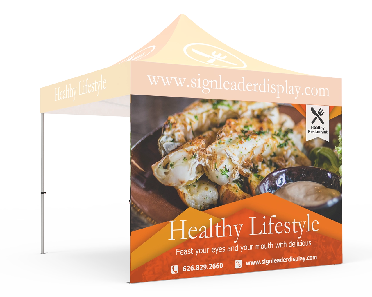 Increase brand attention to your enterprise at outside activities, sporting events, fairs and festivals. Signleader Display's 10x10 custom printed tent full walls make use of full digital printing which allows your event tent to be a 100% customizable with multi-coloration imprint. Promote and appeal to new customers with our commercial grade custom pop up canopy tent for events.