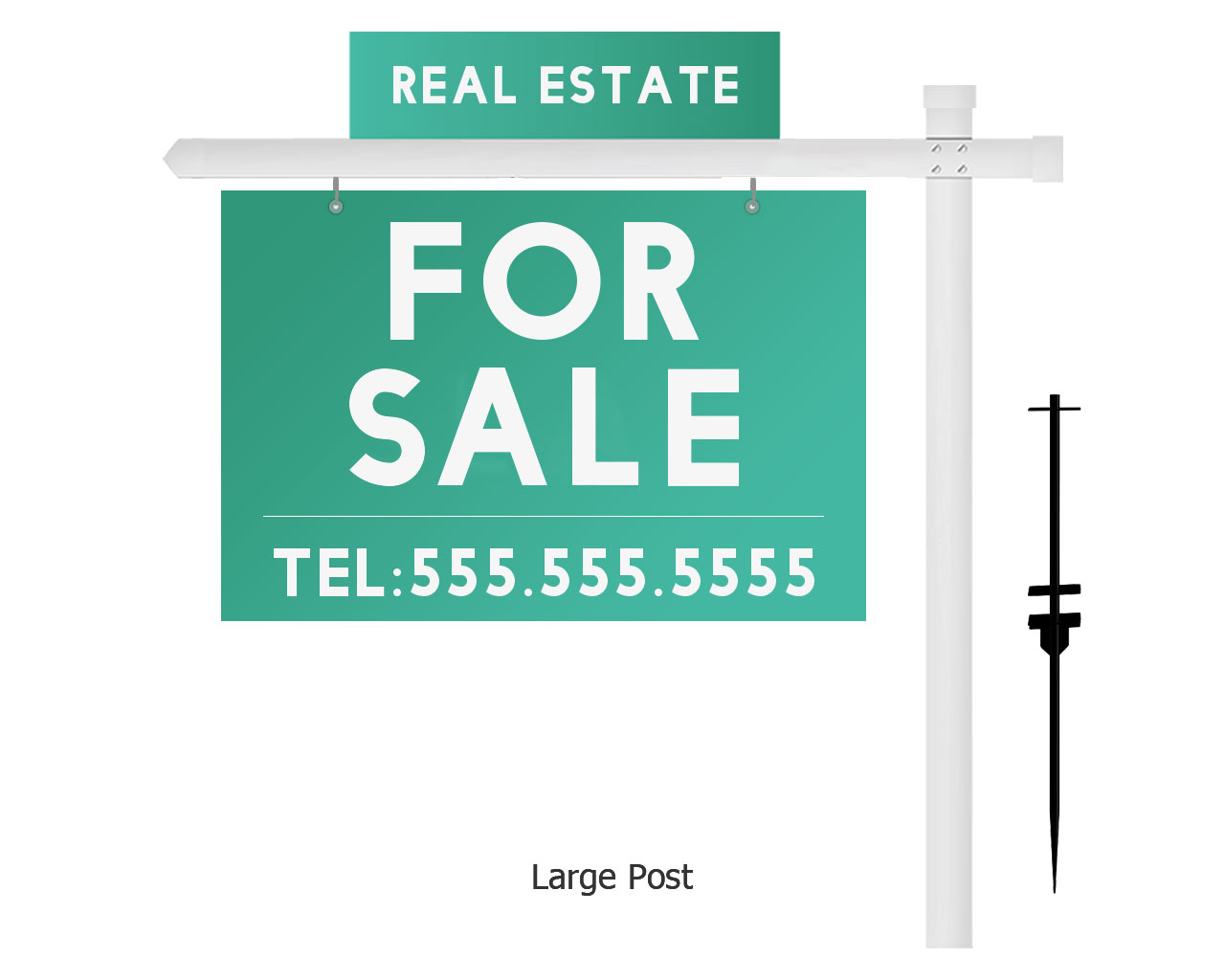 To spread the message about your real estate listing, our Real Estate Posts are an extremely convenient solution for any Realtor. This Real Estate Sign Holder Post is one of the most popular Real Estate Sign. The Real Estate Sign Post Stakes are adjustable for different sizes of signs. The Small Post can hold up to a 24” wide sign. Typically customers use an 24""x18"" or 24""x36"" sign. The Large Post can hold up to a 36” wide sign. For that arm common sizes are 36"x24" or 36"x48".
