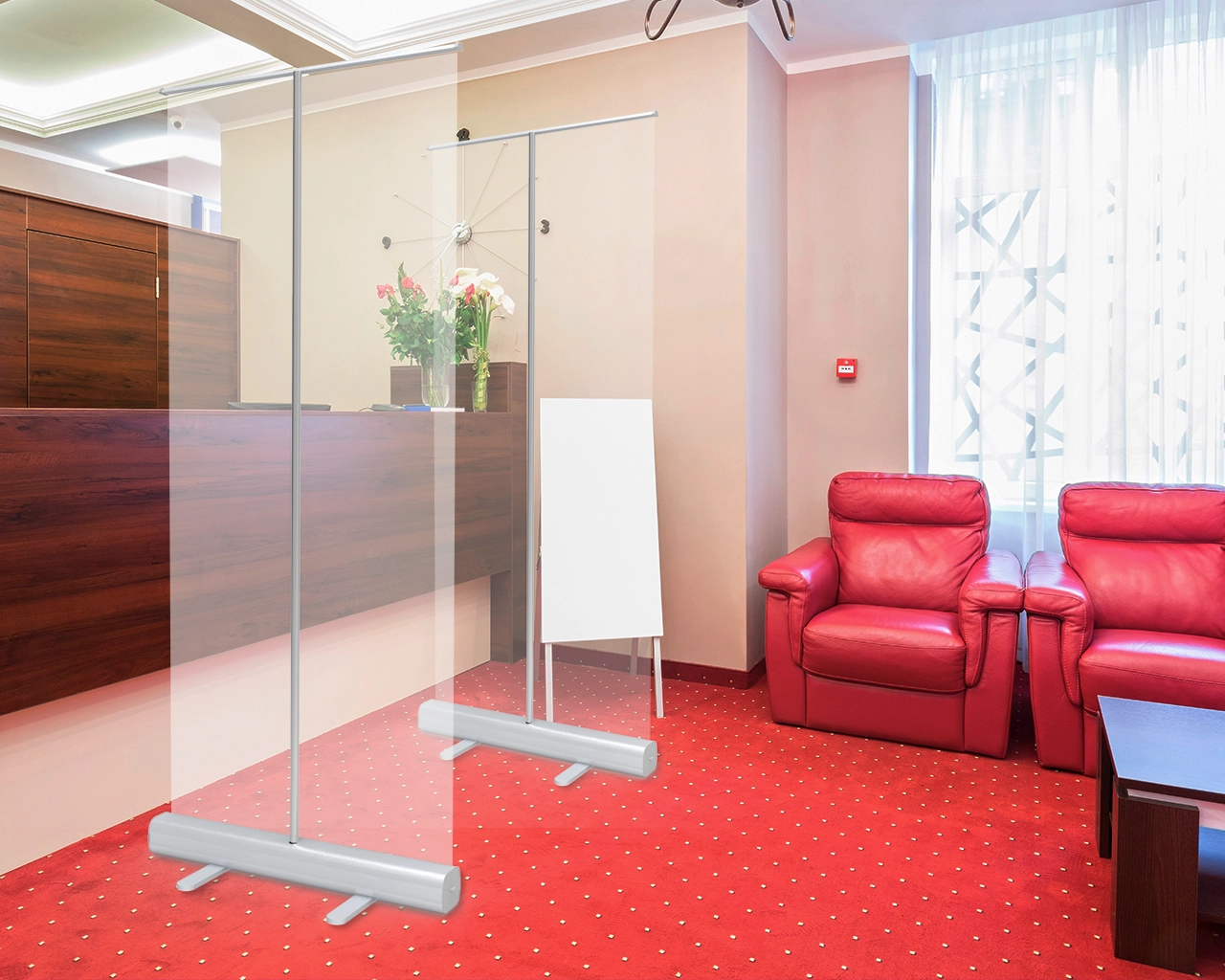 The COVID-19 virus usually spreads from person to person. It is usually caused by an infected person's coughing, sneezing, talking or aerosol spreading and infection through the respiratory tract. Therefore, the establishment of independent security barriers sneeze guards in various industries is more important than ever. Sneeze guards help prevent droplets and sneezing and maintain social distancing. Signleader Display provides a free-standing transparent and retractable sneeze barrier shields to help you protect the safety and health of employees and customers. We usually provide 31.5x79 and 33.5x79 inch sizes and bulk orders are welcome, you can contact us to get a bigger discount.