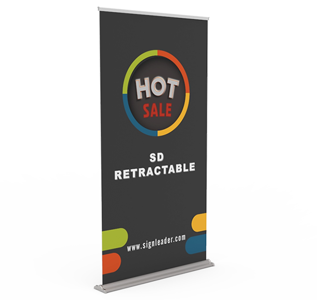 The SD retractable banner stands are able to add dimension and character to a display exhibit advertising while presenting your brand, message. This trade show banner is stable, portable, durable, wrinkle resistant stretch fabric graphics.